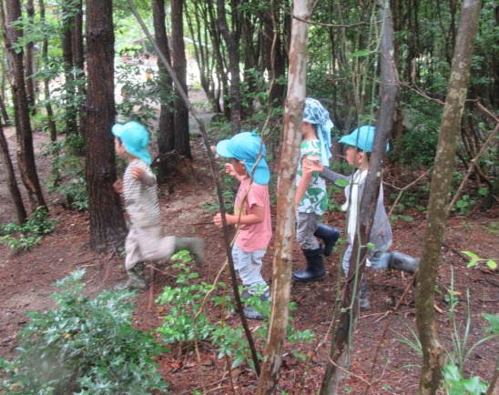 雨が降っていても、自然の中で自分のやりたいことを見つけ、元気いっぱい遊ぶ園児達の姿が印象的でした。