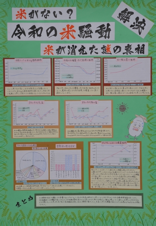 私の家では、祖父母が農業をしており、これまでお米を買ったことがありませんでしたが、収穫量が年々減っていき、去年ついにお米を買うことになりました。ニュースでも古古米販売の話題や輸入米の話題が取り上げられていましたが、お米が不足して、値上がりしていることを知り、米不足についてのテーマに決めました。