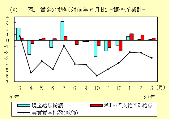 賃金・労働時間・雇用の動き(H27.3)