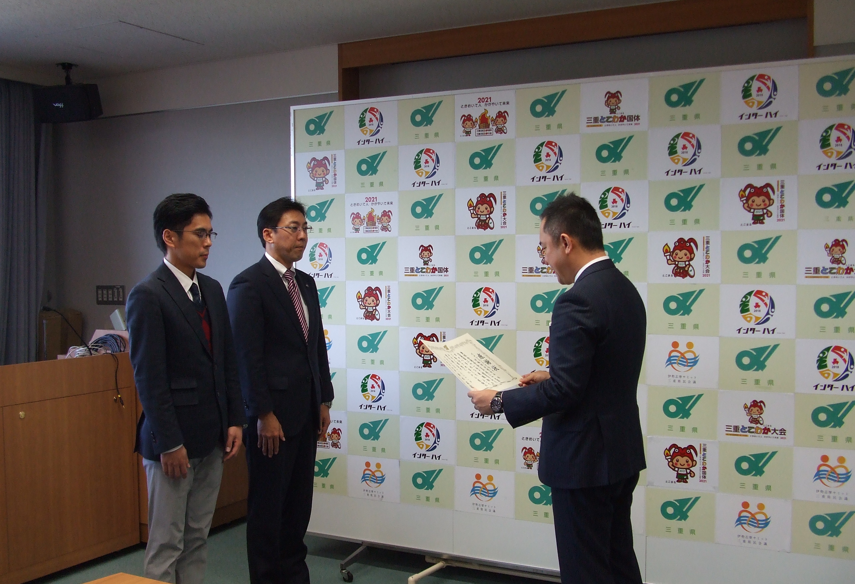 11月8日、三重県立宇治山田高等学校生徒会様から台風21号による県内の被災者支援のため、災害義援金の申し出をいただき、贈呈式が行われました。
