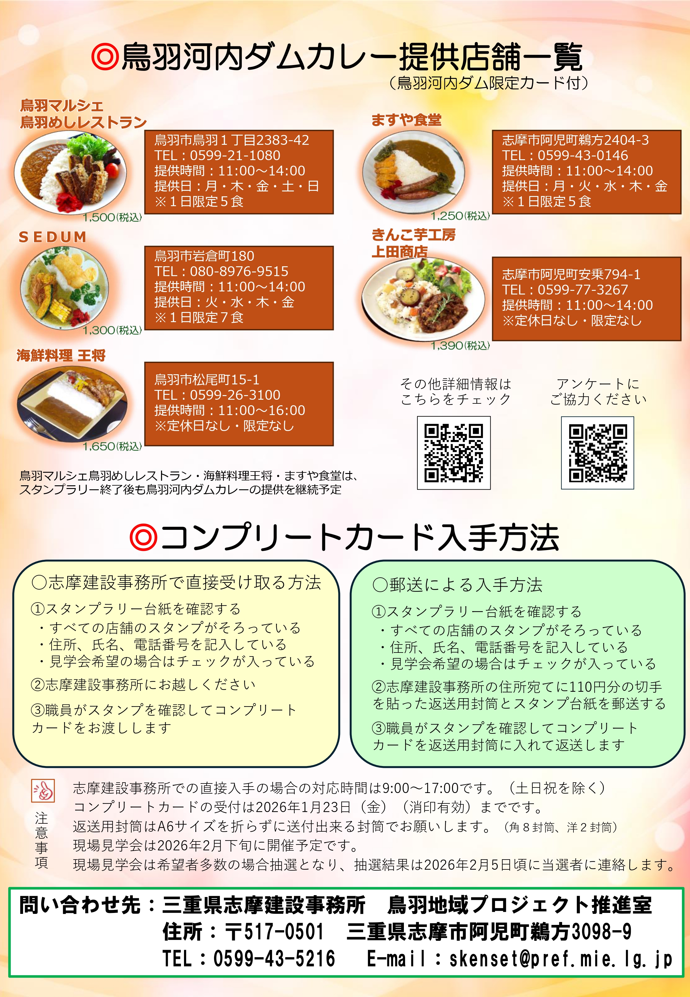 NEW 鳥羽河内ダムカレー提供開始1周年記念スタンプラリー開催中!
