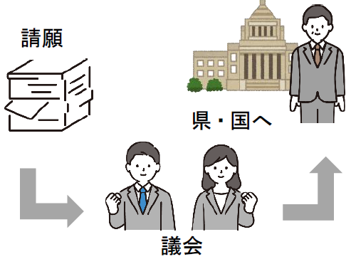 所管の常任委員会での審査結果を踏まえ、本会議で採択された請願のうち、県政に関するものについては、その実現に向け、どのように取り組んだのか知事に対し報告を求め、国政に関するものについては、衆参両議院議長や内閣総理大臣に対して意見書を提出するとともに、県選出国会議員に協力を要請しています。