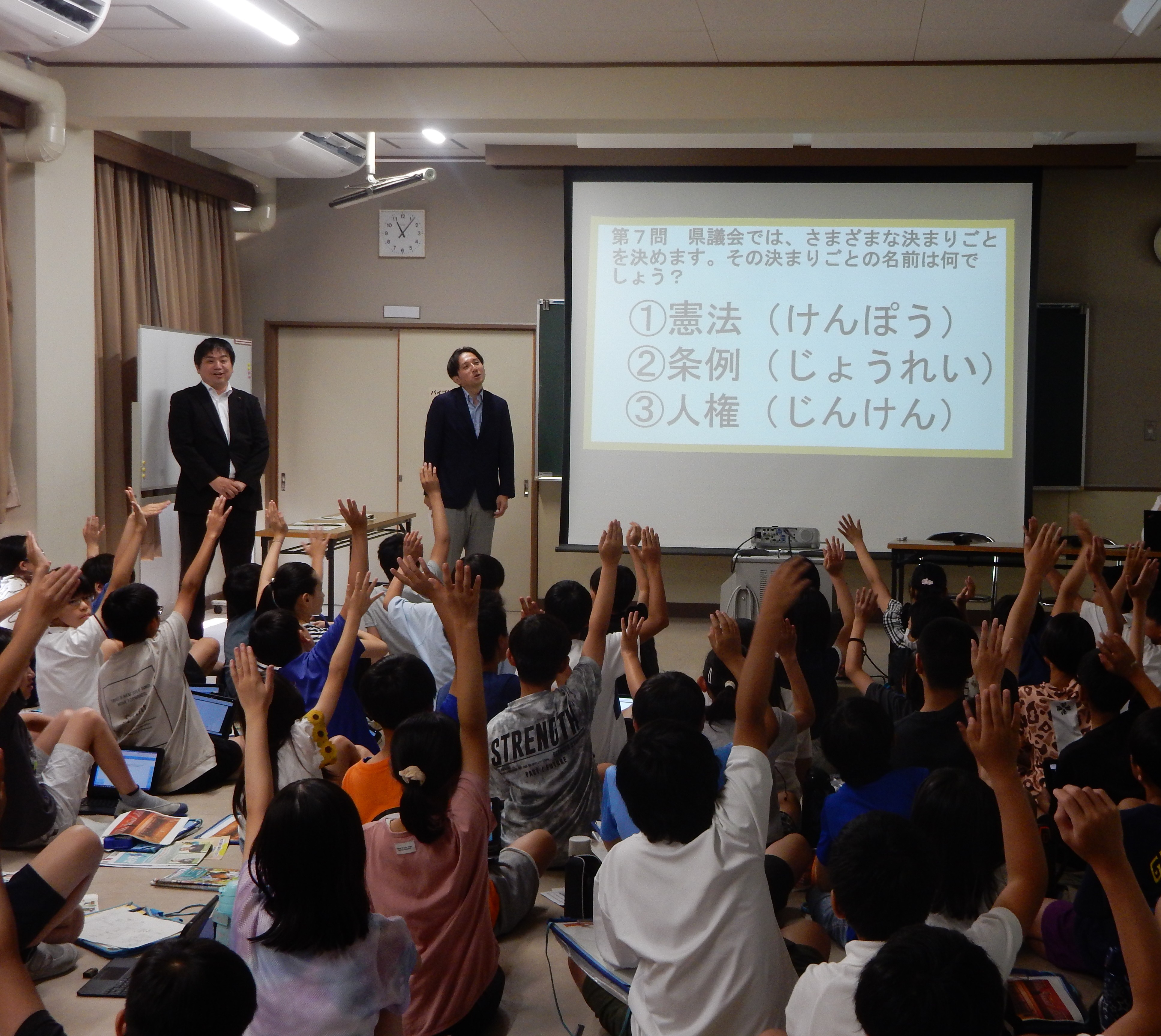 未来の有権者である子どもたちに、主権者教育の一環として、議会の仕組みや役割を伝える授業を行っています。