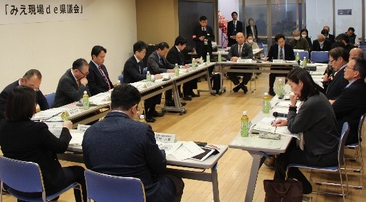 県政の重要課題等をテーマに県内各地で県民の皆さんと意見交換を行う「みえ現場de県議会」。