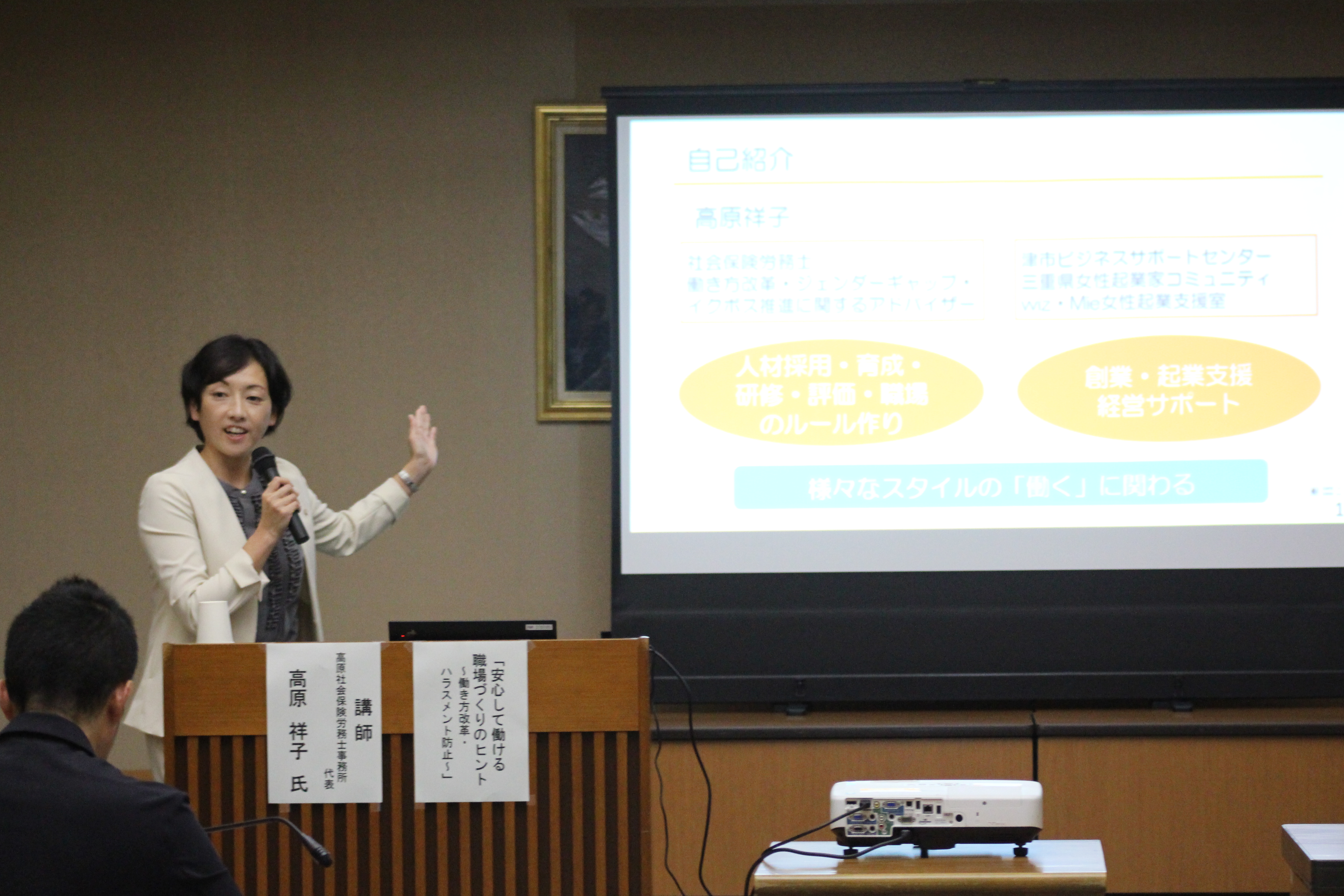 勉強会では、津市内で社会保険労務士として実務に携わる講師から、働き方改革関連法などに係る知見と、それらを踏まえた、人材確保に必要な視点について解説いただき、今後の働き方改革のあり方について理解を深めました。