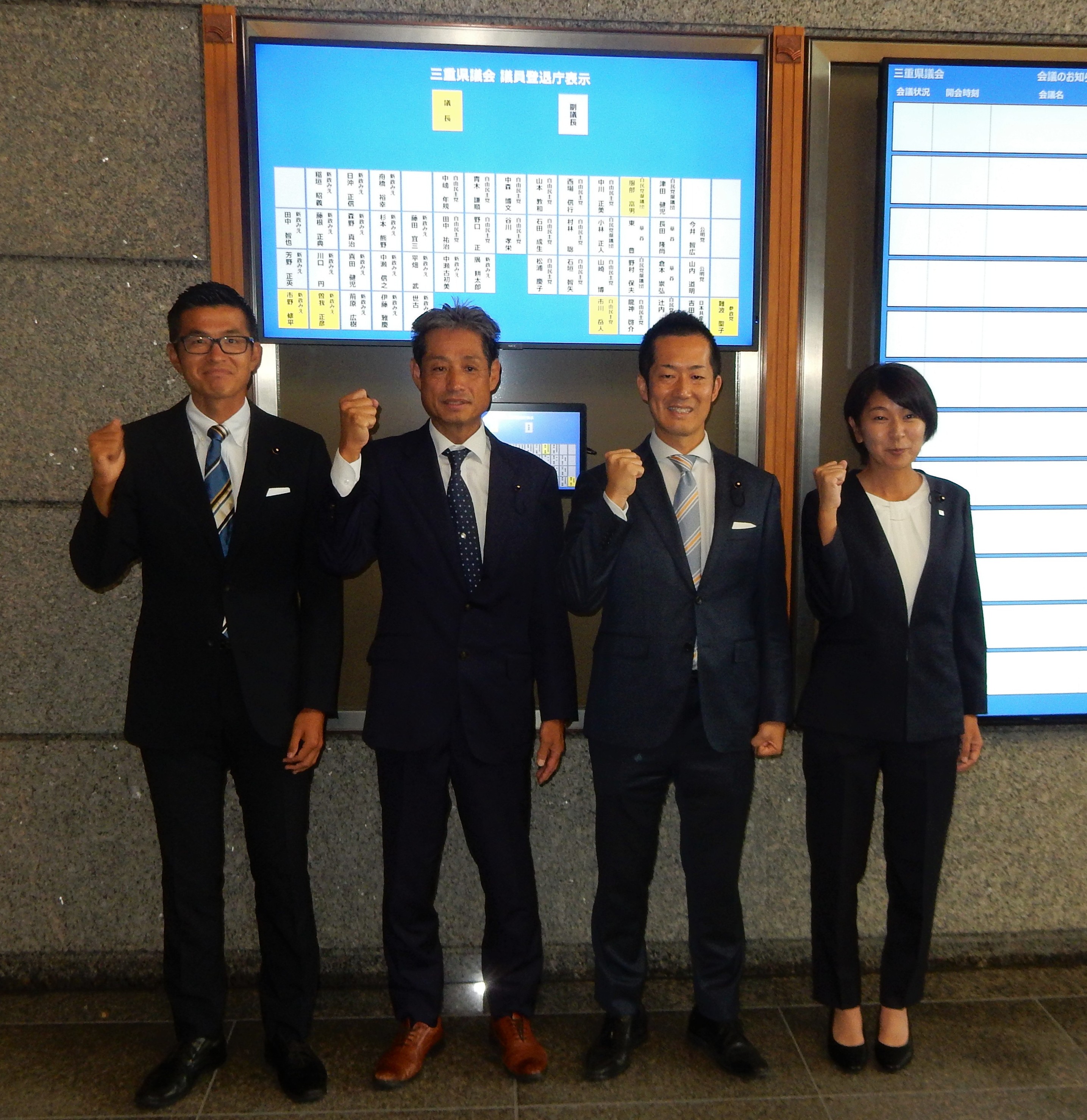 9月7日執行の知事選挙に合わせて実施された、県議会議員補欠選挙(桑名市・桑名郡選挙区《欠員2》、鈴鹿市選挙区《欠員1》、伊賀市選挙区《欠員1》)で当選した新議員4名を迎え、9月定例月会議がスタートしました。