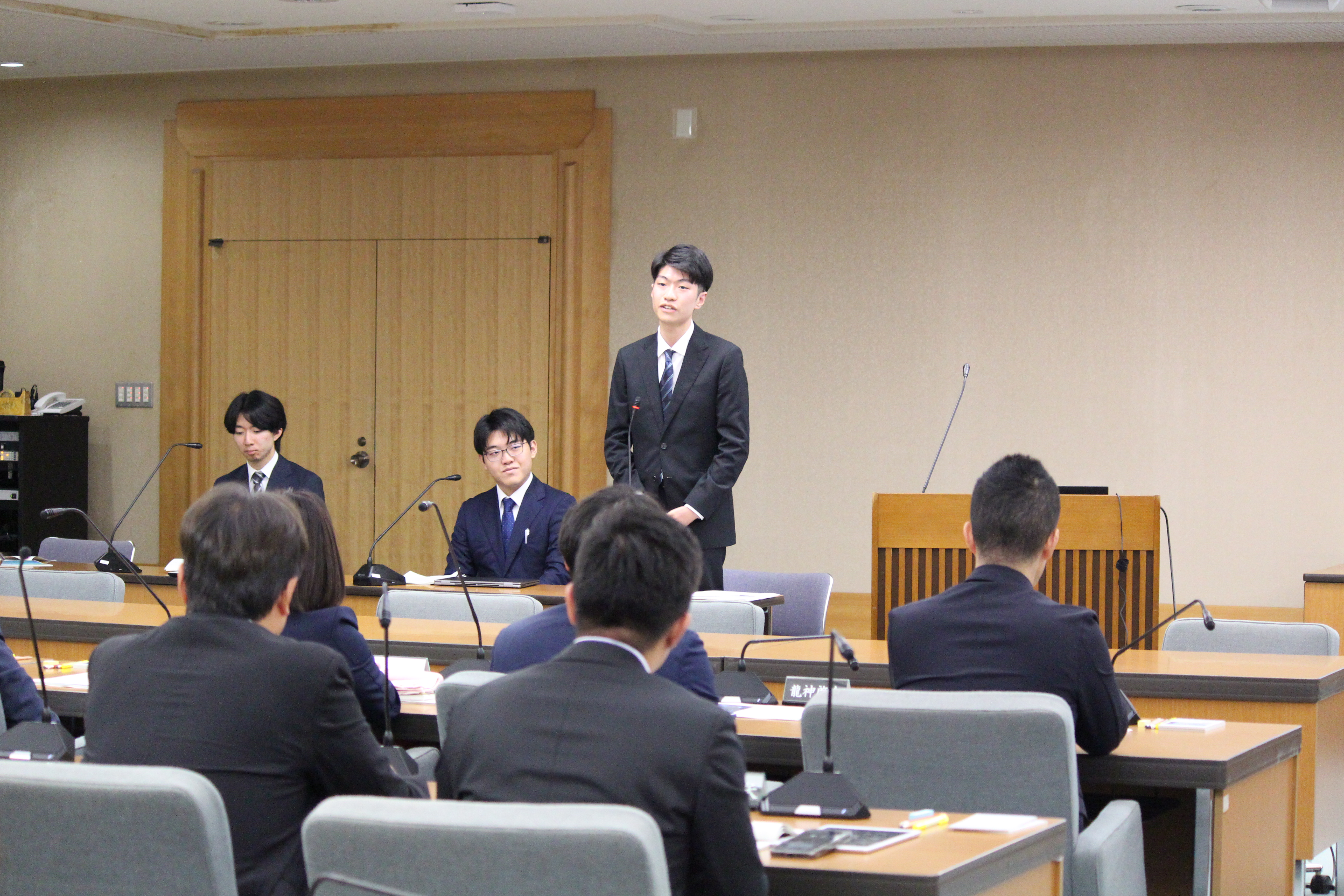 インターンシップ終了後の報告会では、議会の広報機能の充実や、執行部のキャパシティに注目した改革、議会事務局の改革等について実習生たちから提案をいただき、議員との間で活発な質疑応答が行われました。