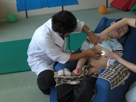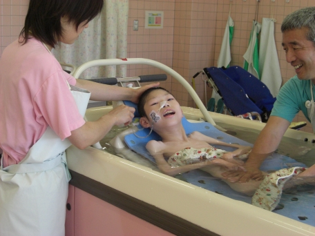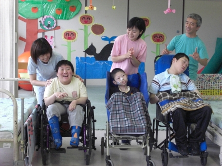 ![]() 草の実では重症心身障害児(者)通園事業を実施しており、これを『さわやか教室』と名付け、現在20名の方に利用登録をしていただき、月曜から金曜までの週に5日間、一日あたり5名の利用を上限として実施しています。さわやか教室ではレクレーションや季節の行事を楽しみながら、入浴サービス、小児科医師の回診、リハビリ等も受けていただけます。 |