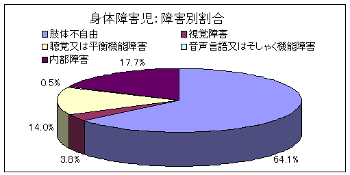 全身体障害児(1,374名)のうち肢体不自由児(882名)は、64.2%と肢体不自由児が6割以上を占めていました。