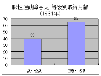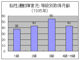 身体障害者手帳の取得時年齢については、脳性運動障害に関しての昭和59年(1984年)、平成7年(1995年)の調査によれば、1級、2級の重度の障害児が3級〜6級の中軽度の障害児よりもかなり早く取得していました。これは、重度障害児ほど診断の早期確定が容易なこともありますが、保護者の障害の受容が早いことや日常生活用具や装具などが必要になる場合が多いことなどが大きな要因と考えられました。