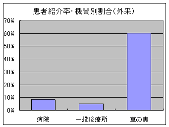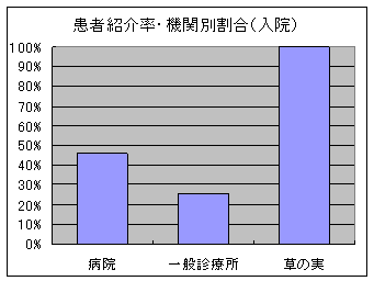 ちなみに一般の医療機関と比較してみると外来患者の紹介率は圧倒的に高くなっており、当施設の専門機関としての大きな特徴を示しています。さらに入所児に関しても、紹介率は100%であり、やはり一般病院と比較し、極めて高率となっています。