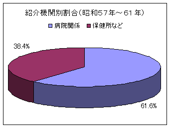 ところで乳幼児健診は、20数年前には現在のような病院・医院が中心ではなく、主に保健所で行われていたため、40%近くが保健所からの紹介でした。