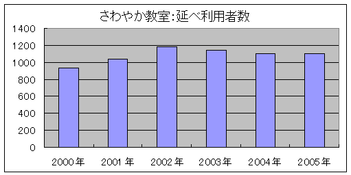 在宅の重症心身障害児(者)の方々に対応するため、新規事業である重症心身障害児通園事業(B型)を平成9年度から検討・準備を始め、平成11年1月から「さわやか教室」と命名して開始しました。機能訓練、入浴や遊びなどの日課を中心に実施しています。開始当初は、10名弱の登録者数でしたが、徐々に希望者数が増加し、最も多いときで23名を数えており、現在20名の方が登録されています。B型事業は、1日利用人員が5名程度とされており、専任職員も常勤3名、非常勤1名です。