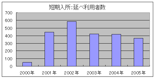 また、短期入所事業も在宅の障害児・者の家族のレスパイト(休養)などを主な目的として行っています。以前は、実質上あまり稼働していませんでしたが、平成10年度から病棟業務などを見直し、本格的に実施してきました。一時保護も含め、積極的な受け入れを行っています。ただ、障害者自立支援法が施行されて以降、「日中利用」を受けることが難しくなっており、利用者の減少が懸念されます。
