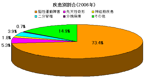 | 脳性運動障害 | 先天性奇形 | 神経筋疾患 | 二分脊椎 | 分娩麻痺 | その他 |
