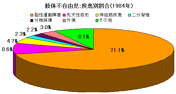 | 肢体不自由児病類別比率(1984年) | ||||||||||