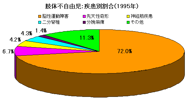 | 脳性麻痺児 | 小頭症 | 水頭症 | 脳血管障害 | 神経筋疾患 | 先天性奇形 | 二分脊椎 | 分娩麻痺 | 外傷 | その他 | |