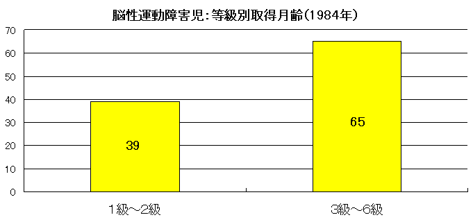 | 脳性運動障害児:手帳取得年齢(1984年) | |