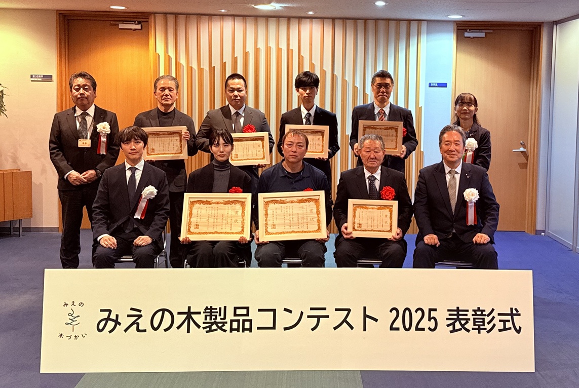 その一環として、日常生活及び事業活動で使用する魅力的な木製品を対象とした「みえの木製品コンテスト」を開催し、令和8年1月30日(金)に三重県庁にて表彰式を開催しました。