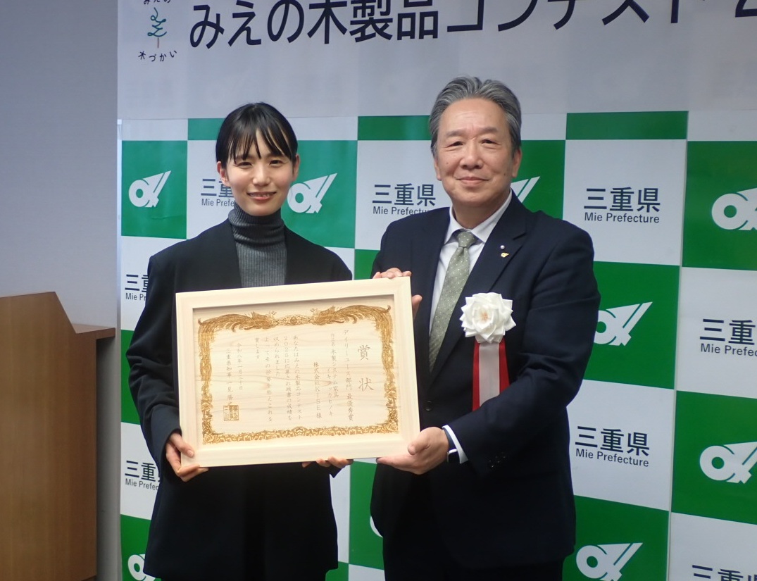 受賞者へは三重県産ヒノキを使用した木製賞状が野呂副知事より授与されました。