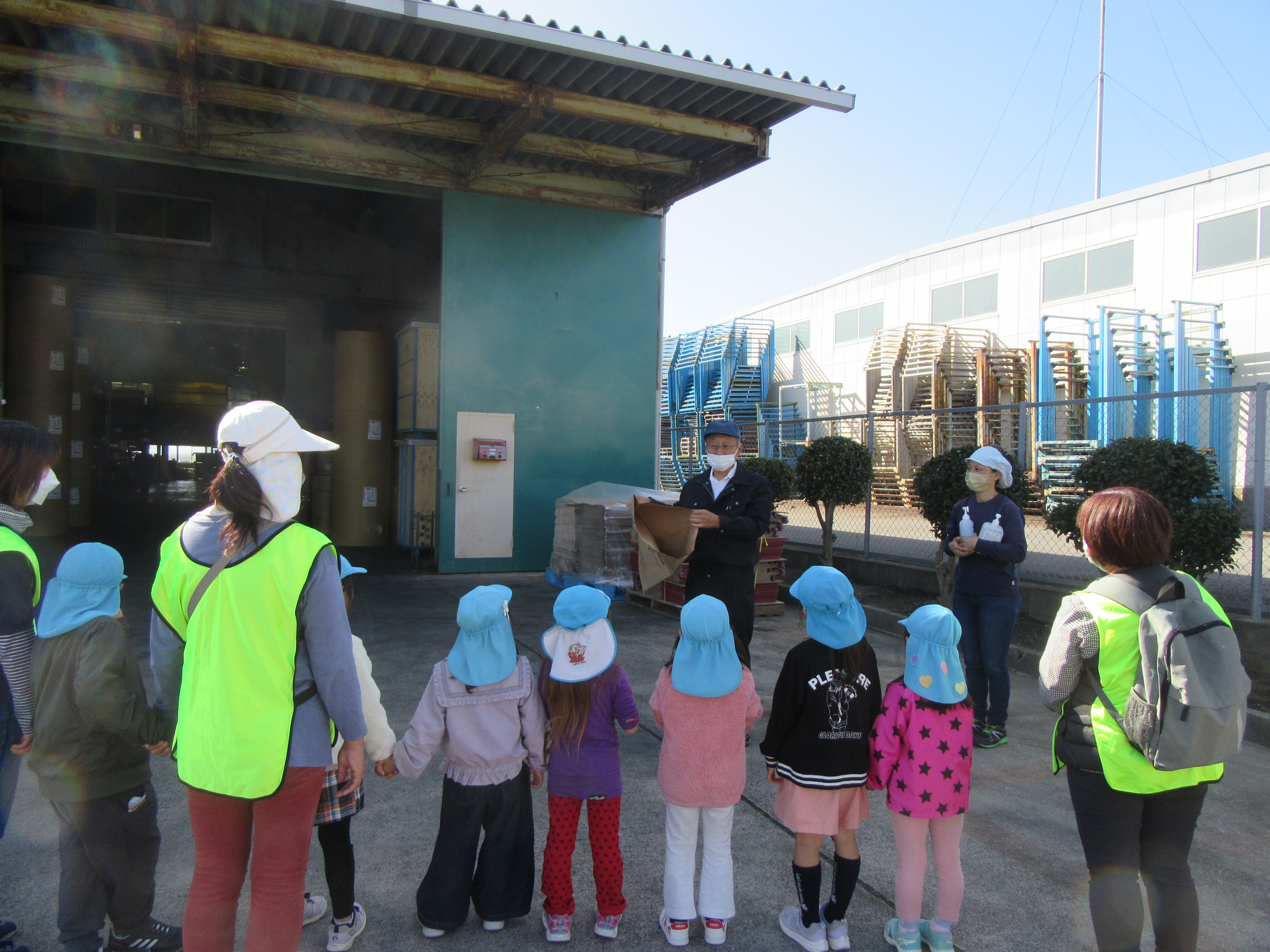 コロナ禍で実施することが出来なかった弊社恒例の会社見学を数年ぶりに開催することができました。可愛い園児7名の皆さんや先生方に弊社の工場内を案内させていただいた時間は、私たちにとって素敵な時間になりました。