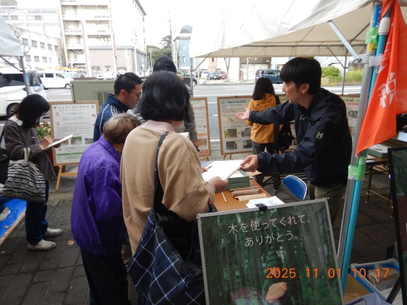 当日は天気に恵まれ、145名の方にお立ち寄りいただきアンケートの回答をいただきました。「みえ森と緑の県民税」の取組については、「土砂や流木による災害を出さない森林づくり」や「暮らしに身近な森林づくり」に多くの関心が寄せられました。またアンケートの自由意見では、「森林づくりに協力したい」など、本事業に対する前向きなご意見も多くいただき、三重県の森林への関心を持っていただく良い機会になったのではないかと思います。