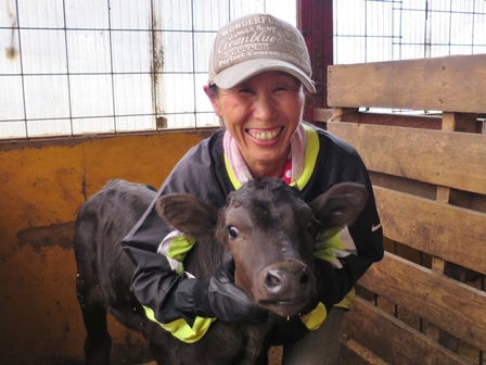 日々牛管理の中、母牛から元気な赤ちゃんが産まれるように愛情を込めて育て、野菜収穫の後、赤ちゃん子牛達に癒され、大きく元気にすくすく育ってねとミルクを与えています。