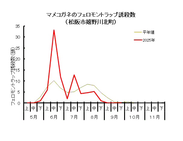 マメコガネ成虫の発生消長 (調査対象期間:5月1日~11月30日)