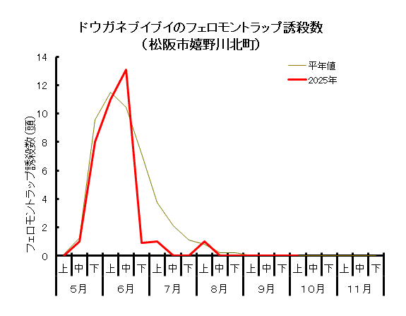 ドウガネブイブイ成虫の発生消長 (調査対象期間:5月1日~11月30日)