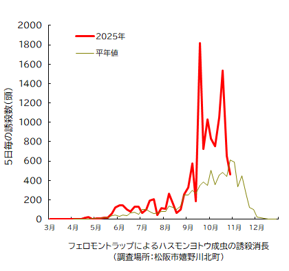 ハスモンヨトウ成虫の発生消長 (調査対象期間:3月1日~12月31日)