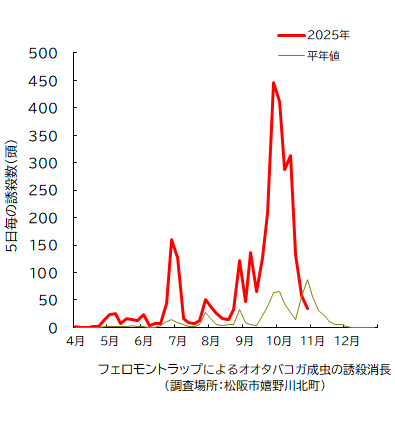 オオタバコガ成虫の発生消長 (調査対象期間:4月1日~12月31日)