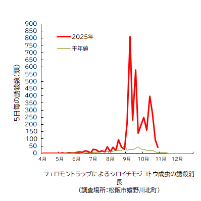 シロイチモジヨトウ成虫の発生消長 (調査対象期間:4月1日~12月31日)