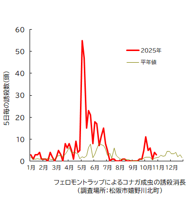 コナガ成虫の発生消長 (調査対象期間:1月1日~12月31日)