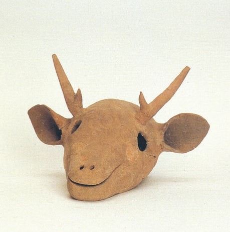 写真は、残っていた破片を基に一部復元したものですが、角があることから雄鹿であることが分かります。角は枝分かれも表現されており、かなり写実的なものといえます。