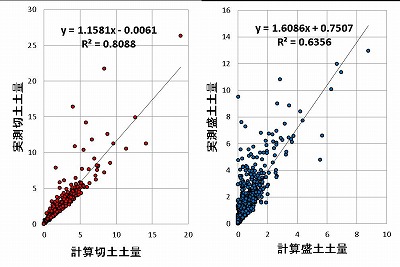 (図2) 計算土量と実際の土量の関係