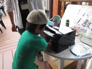 このコーナーでは、白衣を着て、心臓の音を聞いたり、犬のぬいぐるみに付着しているダニ探し、犬のぬいぐるみの中のマイクロチップを読み取ったり、顕微鏡で細菌や動物の臓器などを観察するなど、動物のお医者さんのお仕事を体験していただきました。白衣を着て、聴診器を首にかける子ども達を見て、お父さん、お母さんはとても喜んでいました。