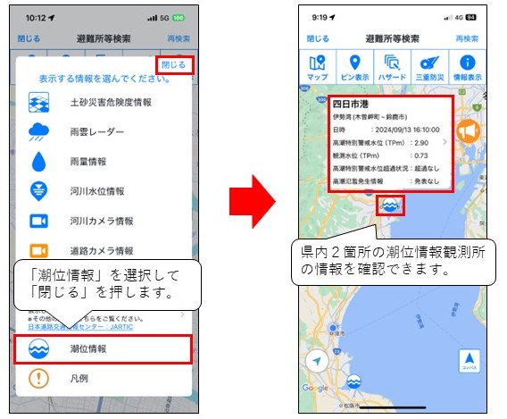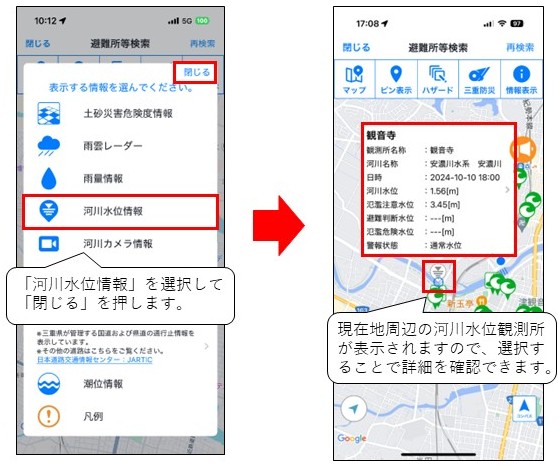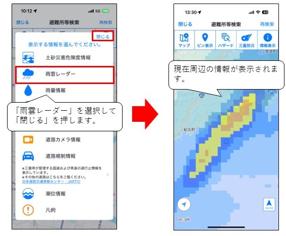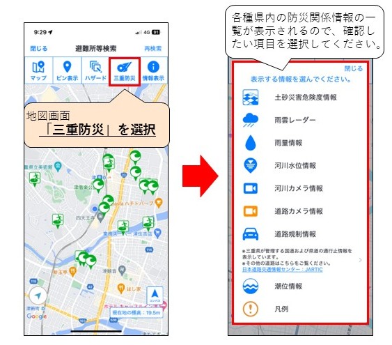 6.  「みえ防災ナビ」各種防災情報の確認について