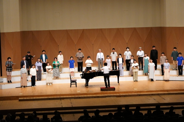 長島さんは、ボイストレーナーとして発声法の指導などに携わりながら、合唱にも参加します。団員は歌う側に長島さんがいることを「心強い」と話します。練習日には、向井さんの指揮の前に長島さんが指導に入り、ハーモニーを作る方法を伝えます。長島さんが合唱の下地を作り、向井さんが音楽の方向性を決める分業制です。長島さんは三重大学教育学部音楽科の出身です。音楽一家に生まれ、生活の中に常に音楽がありました。本業はピアニストです。音楽会等で伴奏を務め、自身のピアノ演奏会を開催します。その上で、ソリストも務める声楽家として活躍しています。「やれる限りやりたい」と両方を追求してきました。音楽関係者からは「ここまで歌えるピアニストは他にいない」といわれます。