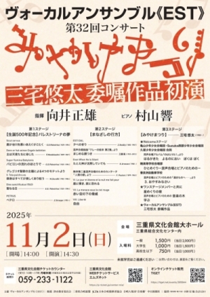 ヴォーカルアンサンブル《EST》の「文化」における長年の功績が県民功労者としてふさわしいものとして、令和7年、三重県知事より表彰状と県民功労章が授与されました。