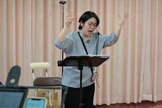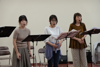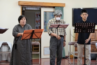 音楽教師として勤めた経験があり、複数の少年少女合唱団を指導しながら、向井さんが指揮する「やちまた混声合唱団」でもトレーナーを務めるなど、音楽指導者として広く活動しています。必要があれば団員の個別レッスンも行います。時には身の上相談も受けます。「声は個性であり、心の悩みは声の震えなどに影響するため、音楽指導とカウンセリングに垣根はない」と考えています。