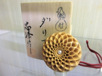 中川さんは、昔、伊勢一刀彫から木彫の世界に入ったことから、木彫のことをよく知っています。その縁で、岐阜県の飛騨高山から知人を通じて、一刀彫をやっている人たちに根付を教えてもらえないかとの依頼があり、相談された中川さんは快諾しました。中川さんが何度も訪れて指導し繋がりができたことで、高山にも何人かの根付職人が誕生しました。他にも、伊勢の伝統工芸の集まり「匠会」が「おかげ横丁」で展示するときに、中川さんに業者や職人のネットワークの中心として会をまとめてもらったと聞いています。