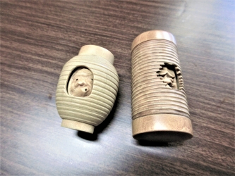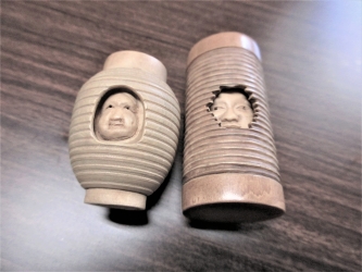 依頼があれば、根付に限らずさまざまなものを彫っていました。お面制作もその一つで、実際に身につけることのできるものでした。中学生の頃、文化祭で祖父の作ったお面を借りて舞台に立ったことは、今でも強く印象に残っています。