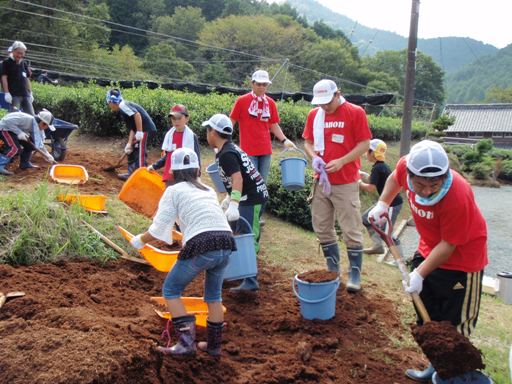 キヤノンマーケティングジャパン株式会社は、大紀町野原地区において、地域活性化と、美しい茶畑の景観を未来につなぐことを目指し、平成22年以降、野原村元気づくり協議会との協働により、地元小学生とともに栽培を停止したお茶畑の再生に取り組んでいます。
