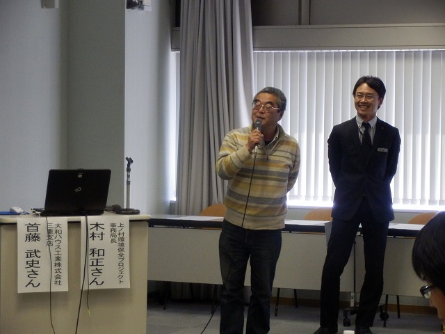 当日は、大和ハウス工業株式会社の首藤さん、上ノ村環境保全プロジェクトの木村さんに取組経過の発表をいただきました。