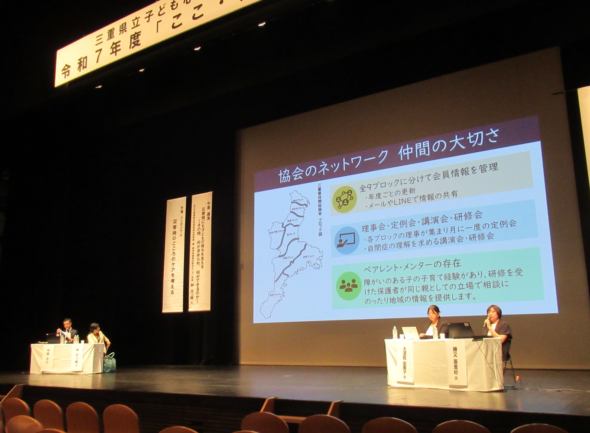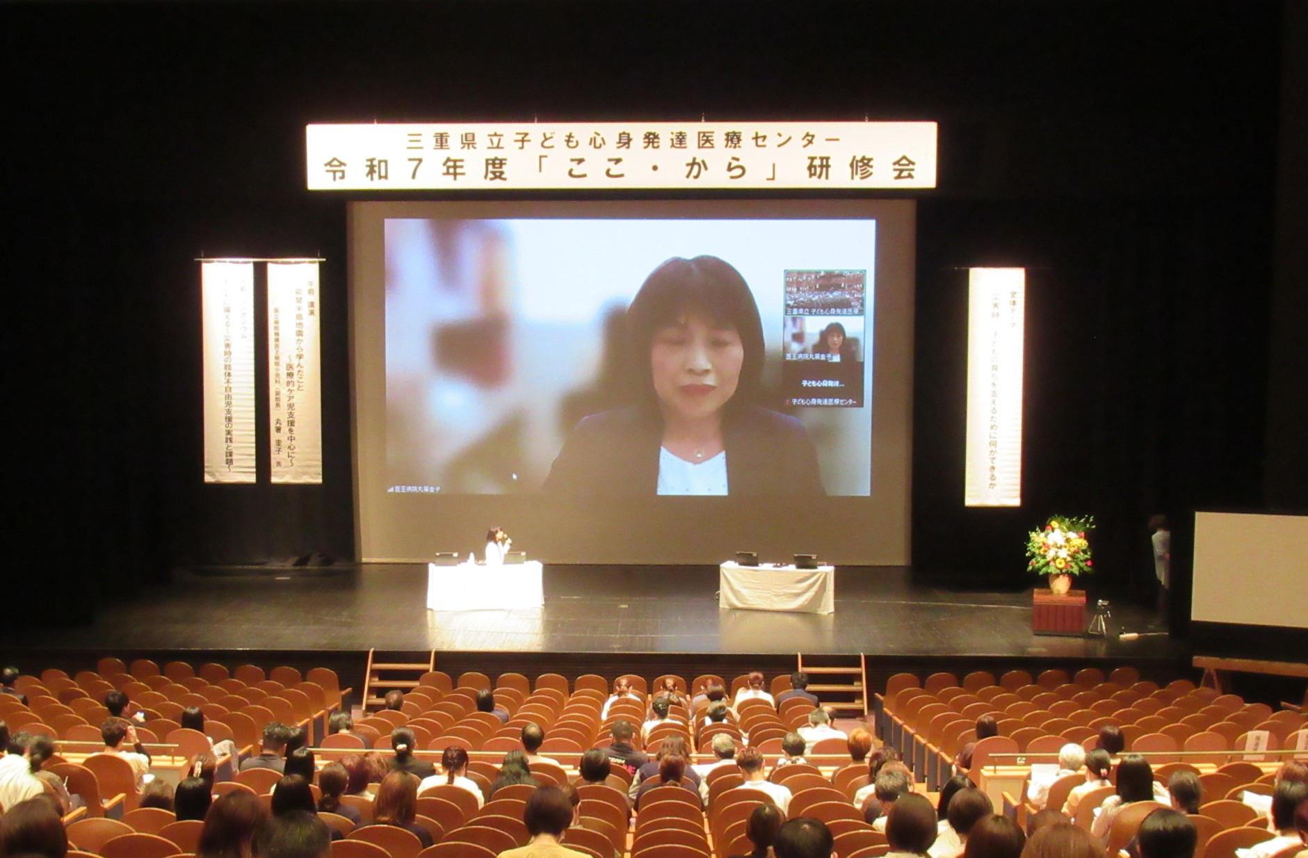テーマ『災害時、子どもの育ちを支えるために何ができるか』令和7年7月29日(火)に「災害時、子どもの育ちを支えるために何ができるか」と題し、三重県総合文化センター文化会館中ホールにて平成7年度「ここ・から」研修会を開催しました。教育、行政、福祉、医療関係者など県内から268名の方にご参加いただきました。
