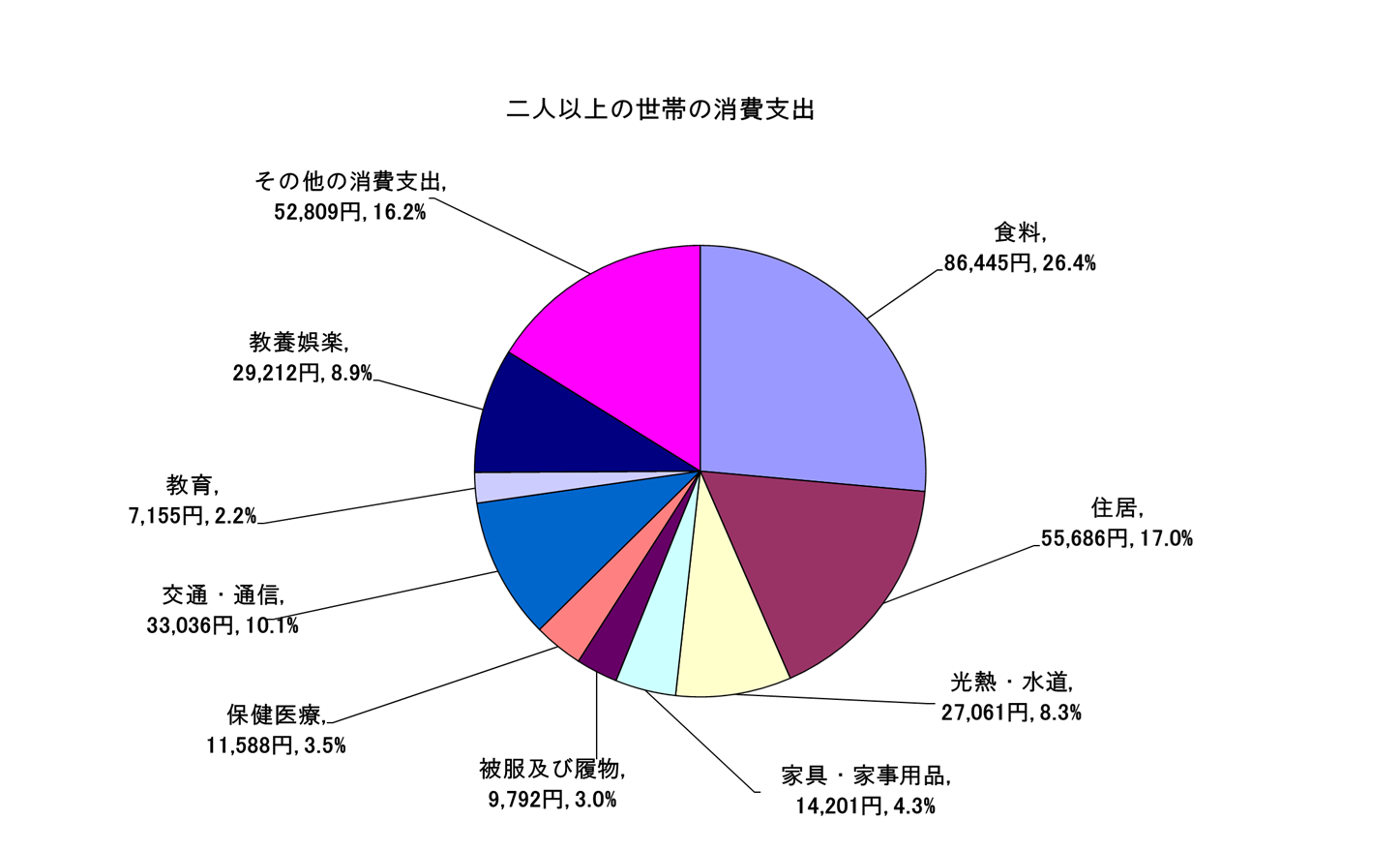 消費支出は、1世帯当たり 326,984円(前月 315,791円)