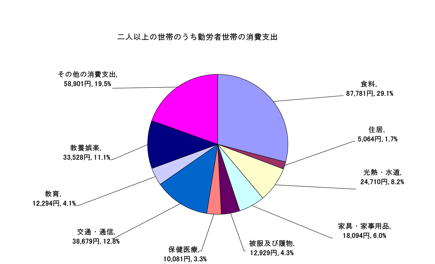消費支出は、1世帯当たり 302,060円(前月 318,632円)