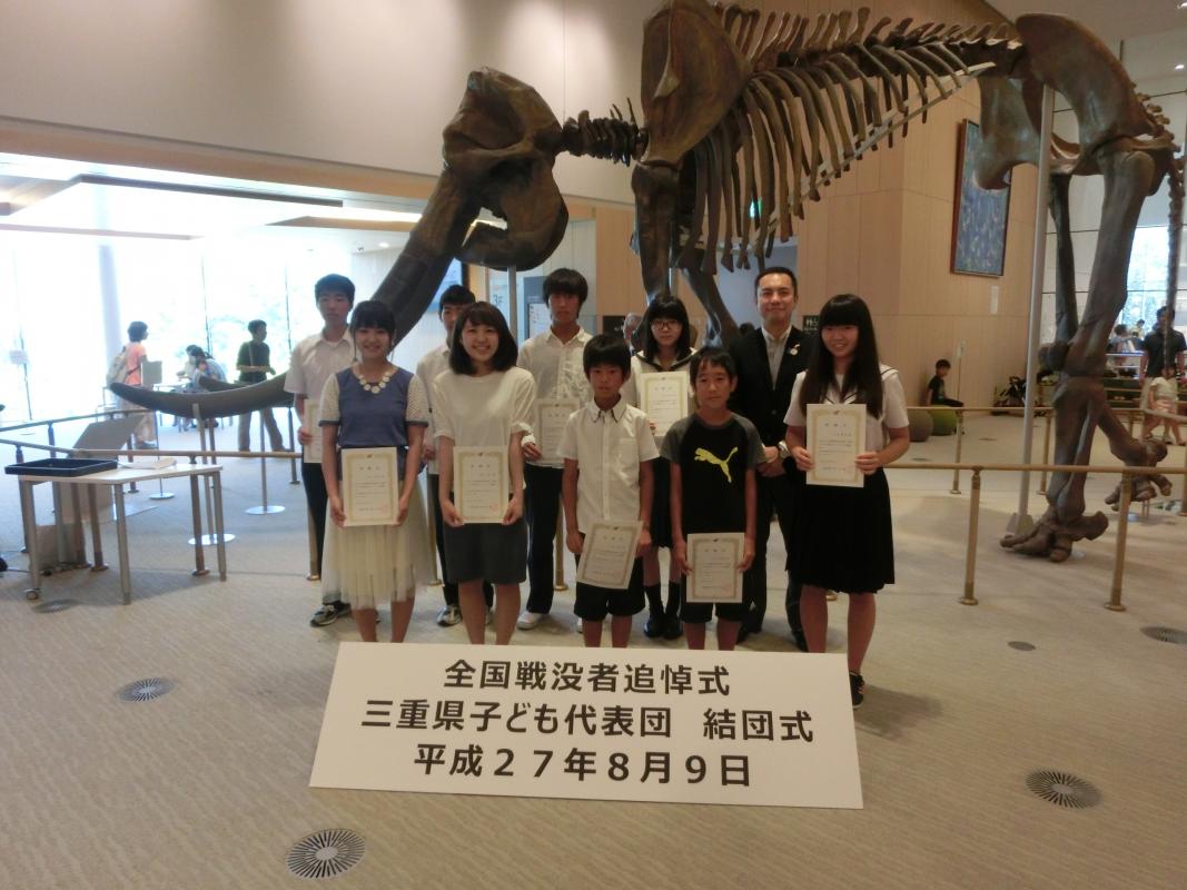 | 私は、今回「子ども代表団」に参加することになって初めて、自分が遺族であることを知りました。それまで遠くの出来事のように感じていたテレビや新聞でみる戦争の歴史を身近に感じるようになり、戦争について考えるようになりました。見学した昭和館や、追悼式を通して、戦争の悲惨さを学び、同時にその出来事をしらない世代が増えていることに危機感を感じました。そんな時代で生きていく私たちの「伝える」使命を確認できたことは素晴らしいことだと思います。たくさんの方々のおかげでできた貴重な体験を無駄にしないよう積極的に平和学習にとりくみたいです。