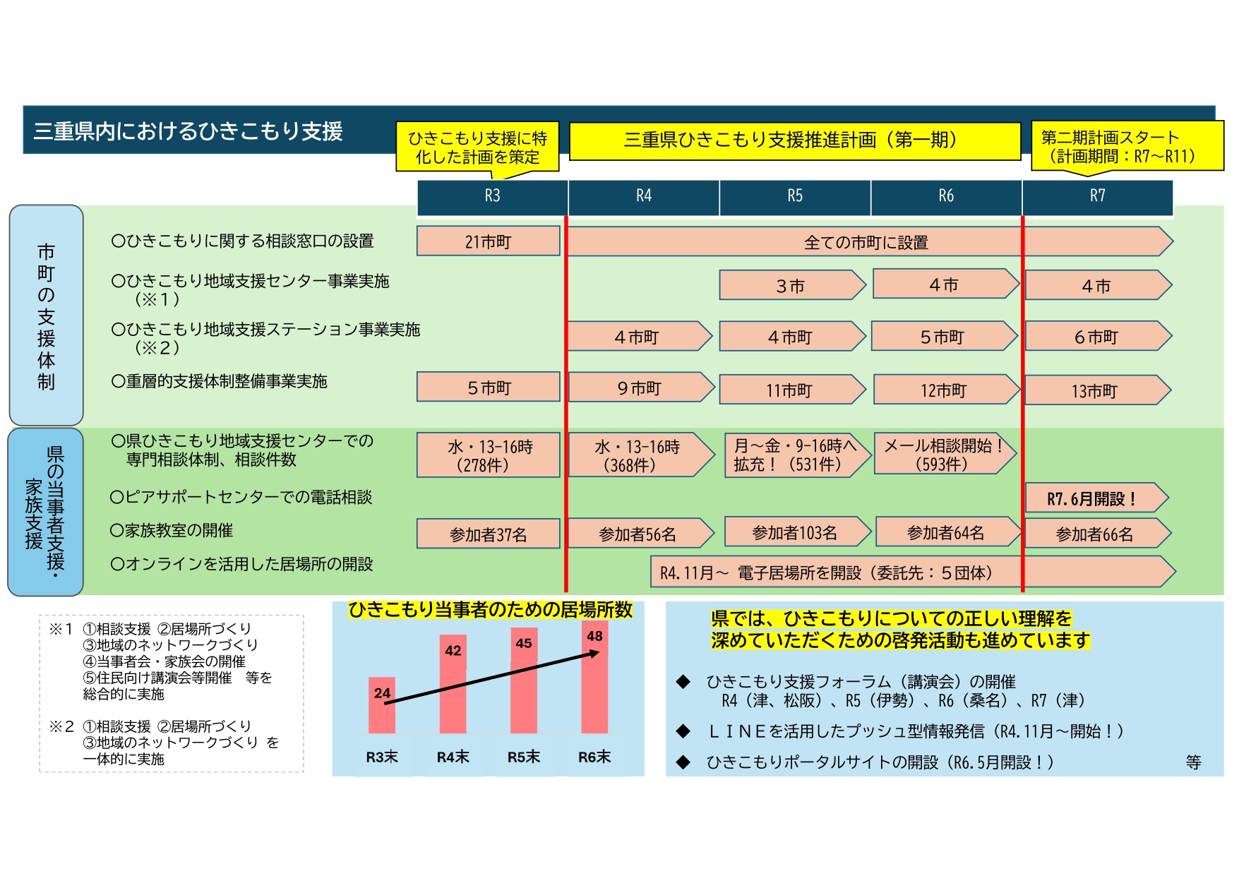 県内におけるひきこもり支援の取組状況は以下のとおりです。