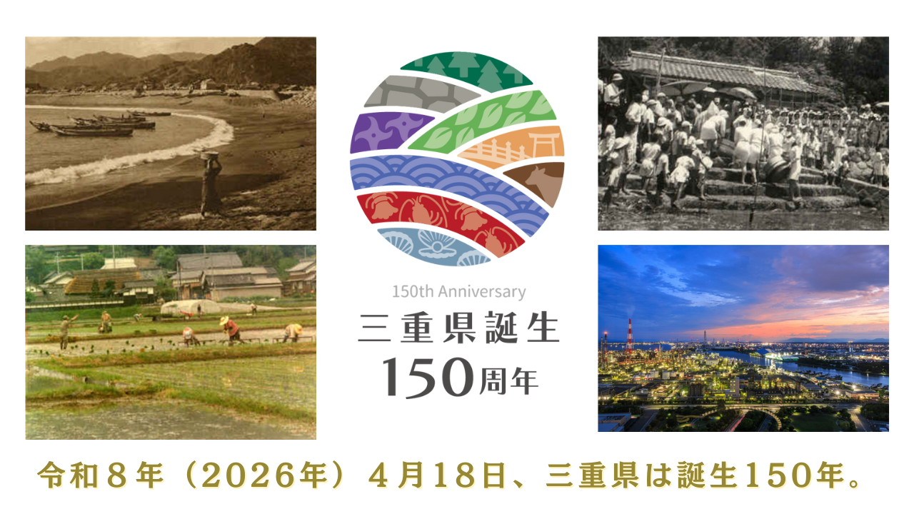 三重県は2026年(令和8年)4月18日に誕生から150年を迎えます。この佳節を迎えるにあたり、三重県の豊かな自然や先人たちが築き上げてきた歴史・文化・産業、さまざまな困難を乗り越えてきた経験を次世代へつなぎ、未来に向けた県内の一体感や機運を醸成していくため、令和8年1月から12月にかけて「三重県誕生150周年記念事業」を実施していくこととしています。